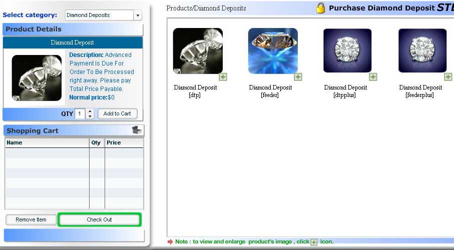 ШАГ 6: В окне магазина справа вы видите 4 изображения бриллиантов, под которыми подписано. Чтобы сделать заказ купона стоимостью $1000 нажмите на изображение третьего слева камня DTP Plus.