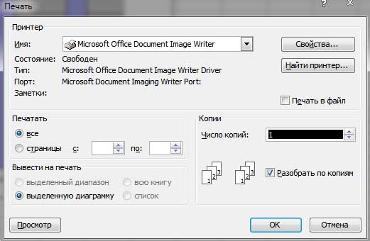 Теперь осталось распечатать созданный отчет. Будем считать, что ваш принтер подключен и находится в рабочем состоянии. Для того чтобы распечатать рабочий лист, достаточно щелкнуть на кнопке Печать, которая находится на стандартной панели инструментов. (на этой кнопке изображен принтер). Рабочий лист (включая диаграмму) будет напечатан с использованием стандартных параметров.