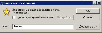 Для того, чтобы добавить ссылку на веб-страницу в меню Избранное откроем это меню и выберем команду добавить в Избранное. То же самое можно сделать с помощью контекстного меню. Вы видите диалоговое окно Добавить в Избранное.