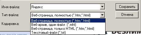 Чтобы сохранить активную html-страницу надо выбрать строку Веб-страница, только HTML. Выбор этого типа файла приведет к сохранению информации, содержащейся на веб-странице, но при этом не сохранятся рисунки, звуковые эффекты и прочие файлы. Чтобы сохранить только текст, содержащейся на активной веб-странице, выберите опцию Текстовый файл. Выбор этого типа файла приведет к сохранению информации, содержащейся на веб-странице в обычном текстовом формате.
